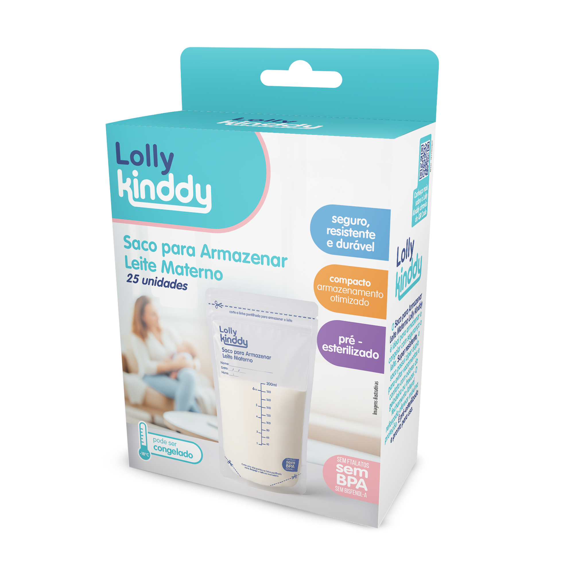 Kit com 3 potes de 150ml, o Pote de Leite Materno Lolly Kinddy promove praticidade, higiene e cuidado ao armazenar o leite. Facilita o transporte, evita vazamentos e o contato com o cheiro de alimentos na geladeira e/ou freezer.